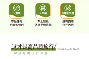纯玩线路,无推销不购物。如您想购买特产或纪念品,请自行甄别质量,如购买后发现上当受骗,需要自行承担后果哦。
