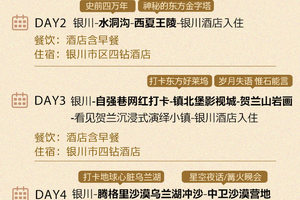 【集合地点】银川市区指定酒店,请报“漫游宁夏”+姓名拿房,酒店入住时间14:00后,提前抵达可将行李寄存在酒店前台;