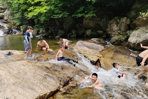 溯溪而上,可谓天下胜景,悬崖峭壁如刀斧砍一般自然生成。