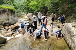 1、装备:户外运动衣裤,徒步/溯溪鞋,小背包,遮阳帽,登山杖;
