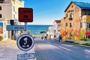 网红打卡点火炬八街,威海火炬八街位于高区管委西侧,南接文化西路,北直通海水浴场,尽头与环海路形成丁字路口,从南驶向北,前半程平平无奇,而从坡顶转弯,眼前的景色瞬间辽阔起来。远处干净的海面像一块蓝色的幕布高过屋顶,随着下坡前行,幕布缓缓落下,一望无际的海面便在眼前铺开,像是在路的尽头打开了一颗“彩蛋”。