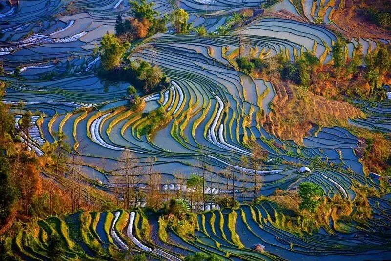 以山为势,层层迭迭,其中梯田的最高级数,达到令人惊叹的3700多级。
