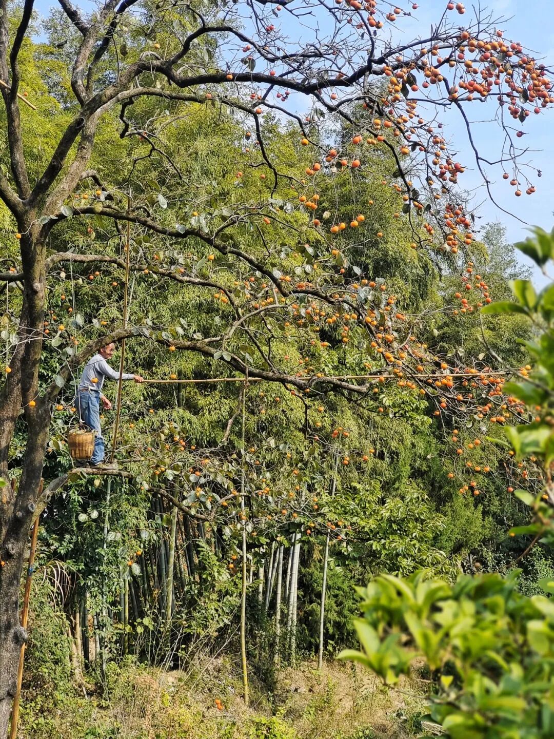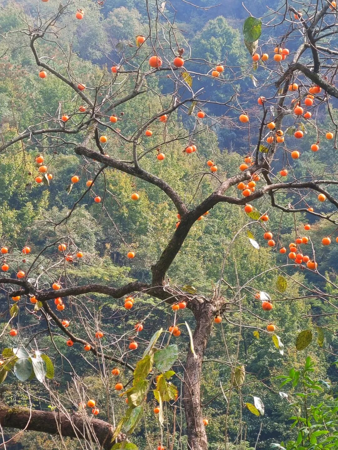 14:00进入錾子石村拍摄,深秋季节,金色柿子挂枝头,似小小的灯笼般;远处的山峦,山间的柿子树,与乡村建筑相映,美丽乡村;走在田埂里,空气是那么清新;品尝脆甜的柿子,甜蜜于心中。沿着“漫步道”游玩,台阶往上走,到达山顶部,有多家民宿,白墙青瓦,与柿子相结合,徽派感觉,可转一圈不走回头路。