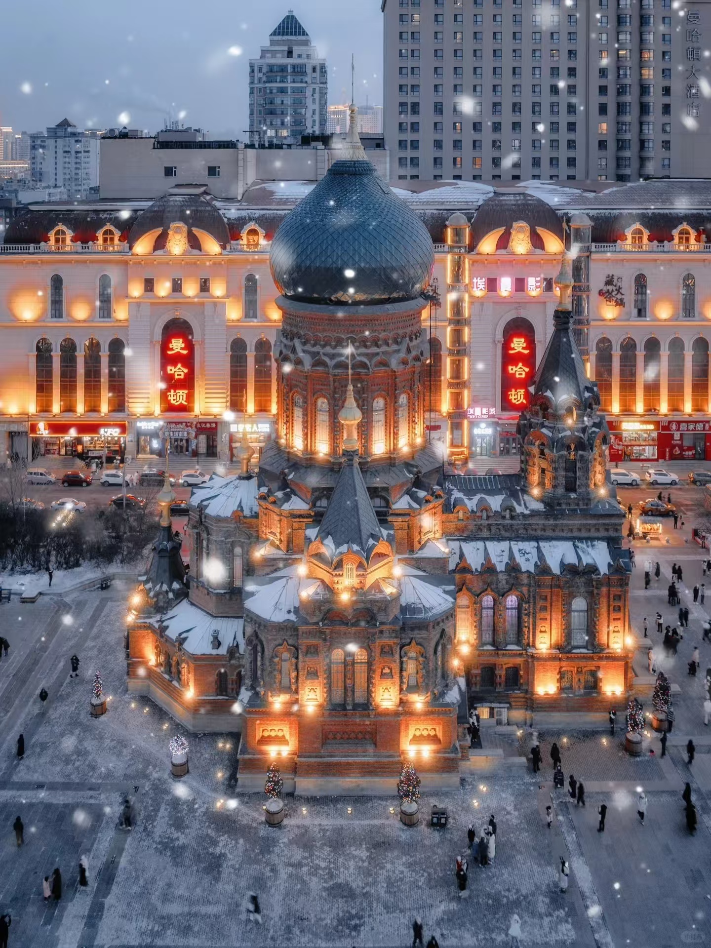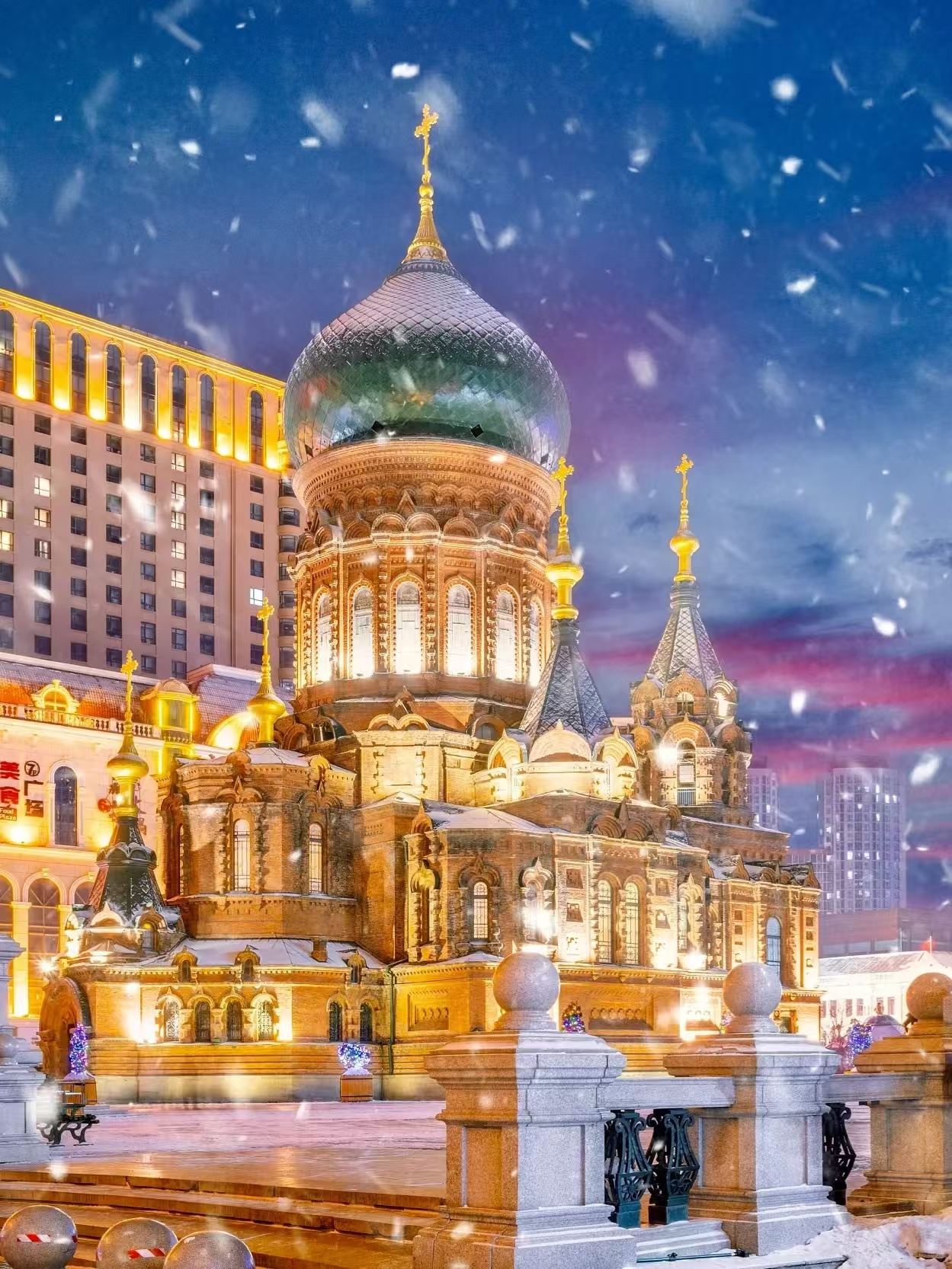 索菲亚教堂:是一座始建于1907年拜占庭风格的东正教教堂,为哈尔滨的标志性建筑。