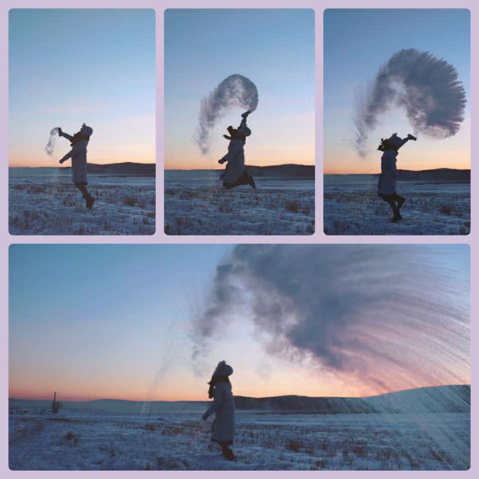 08:00 早餐后大家可以准备好杯子—抖音最火【泼水成冰】,接上热水,在室外进行泼水成冰的美景抓拍。