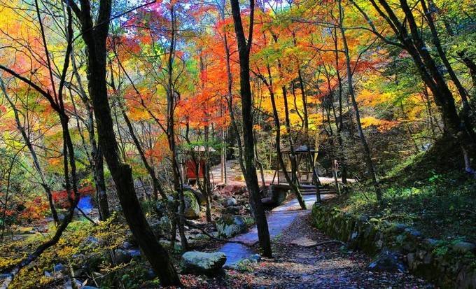 早餐后登车前往桃花溪景区,车把大家放在高处,一路下行游览,现在的桃花溪枫叶全都红了,美得像油画一般!车子在下游出口处接大家,中午景区门口农家午餐,约18:00到达武汉,结束愉快旅程!