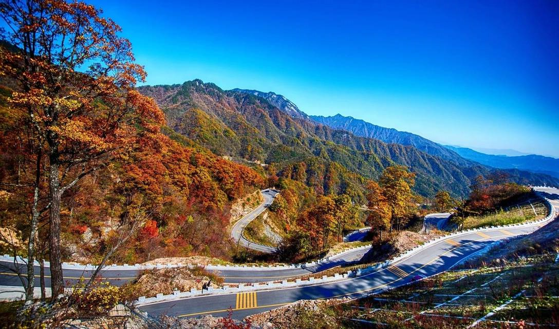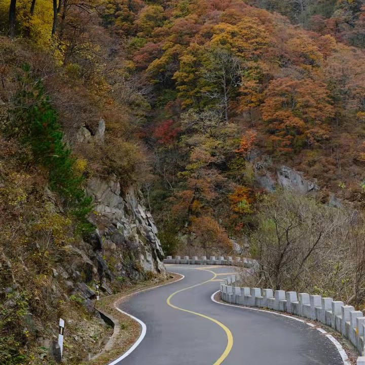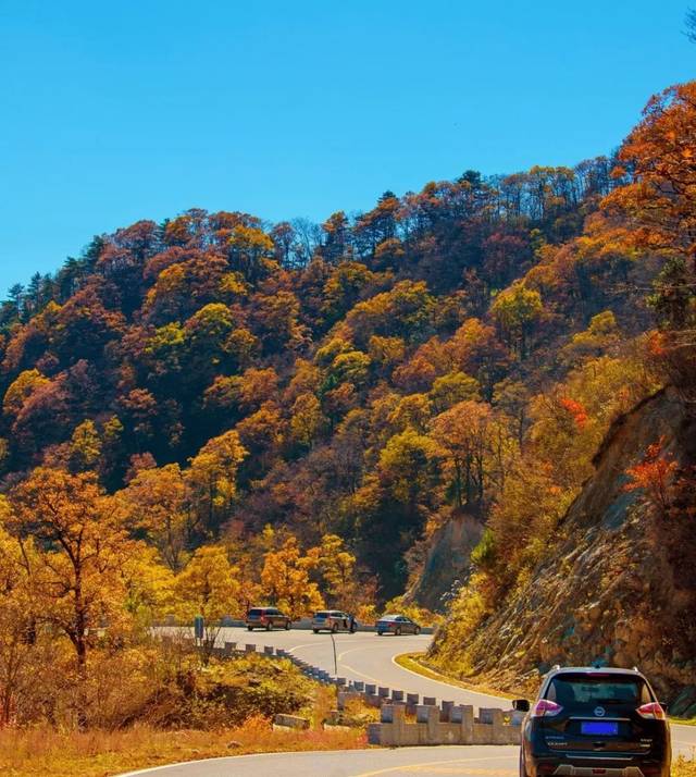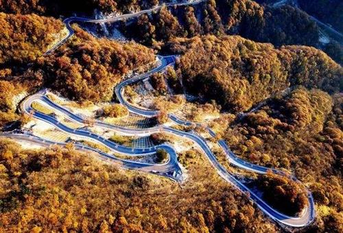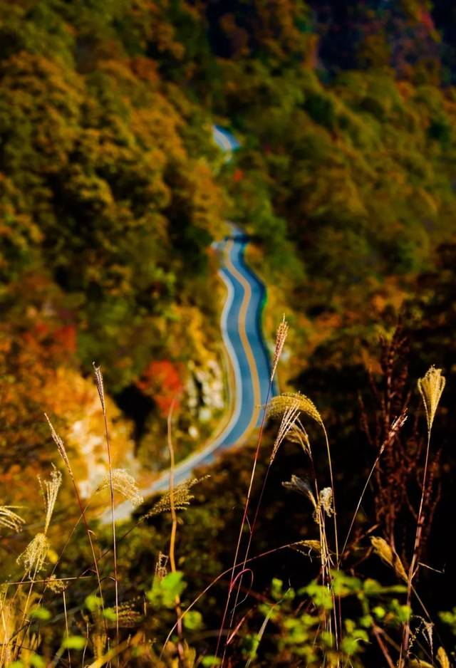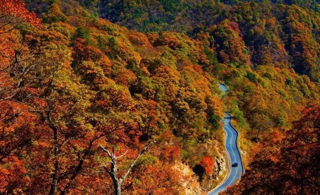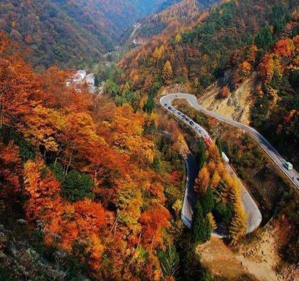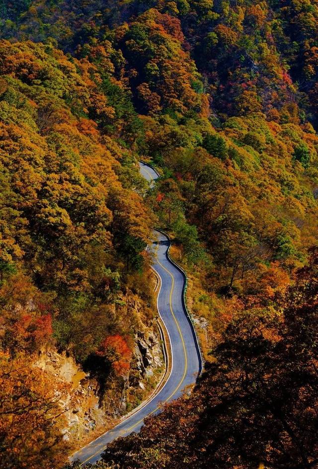 金秋时节,这条路有如无边无际的重彩油墨,把群山装点得美丽极了!