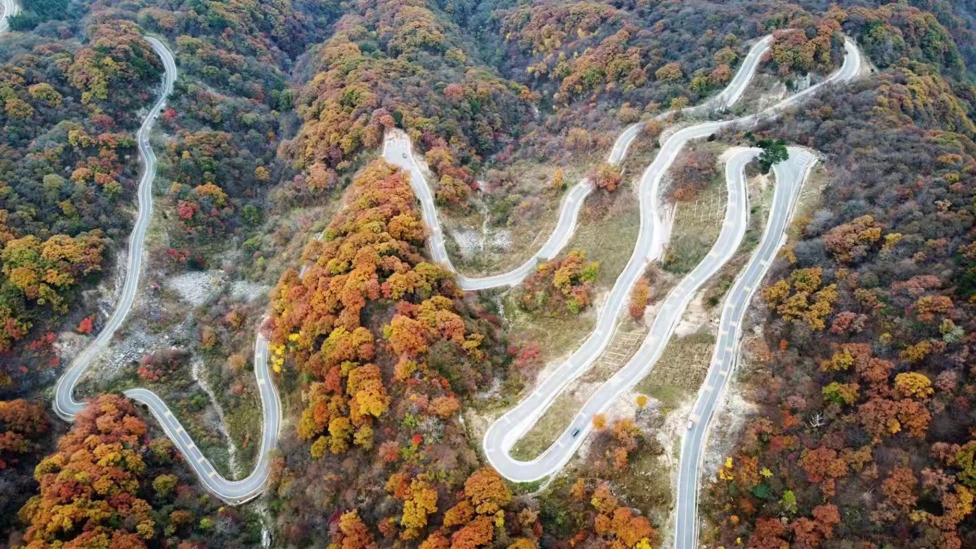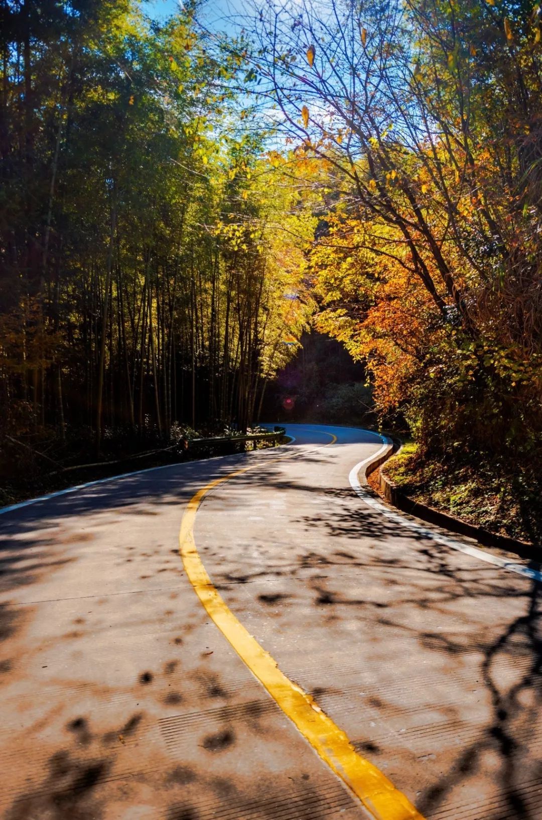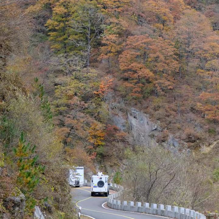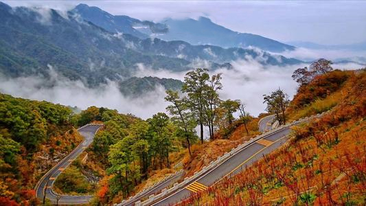金秋时节,这条路有如无边无际的重彩油墨,把群山装点得美丽极了!