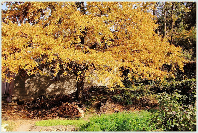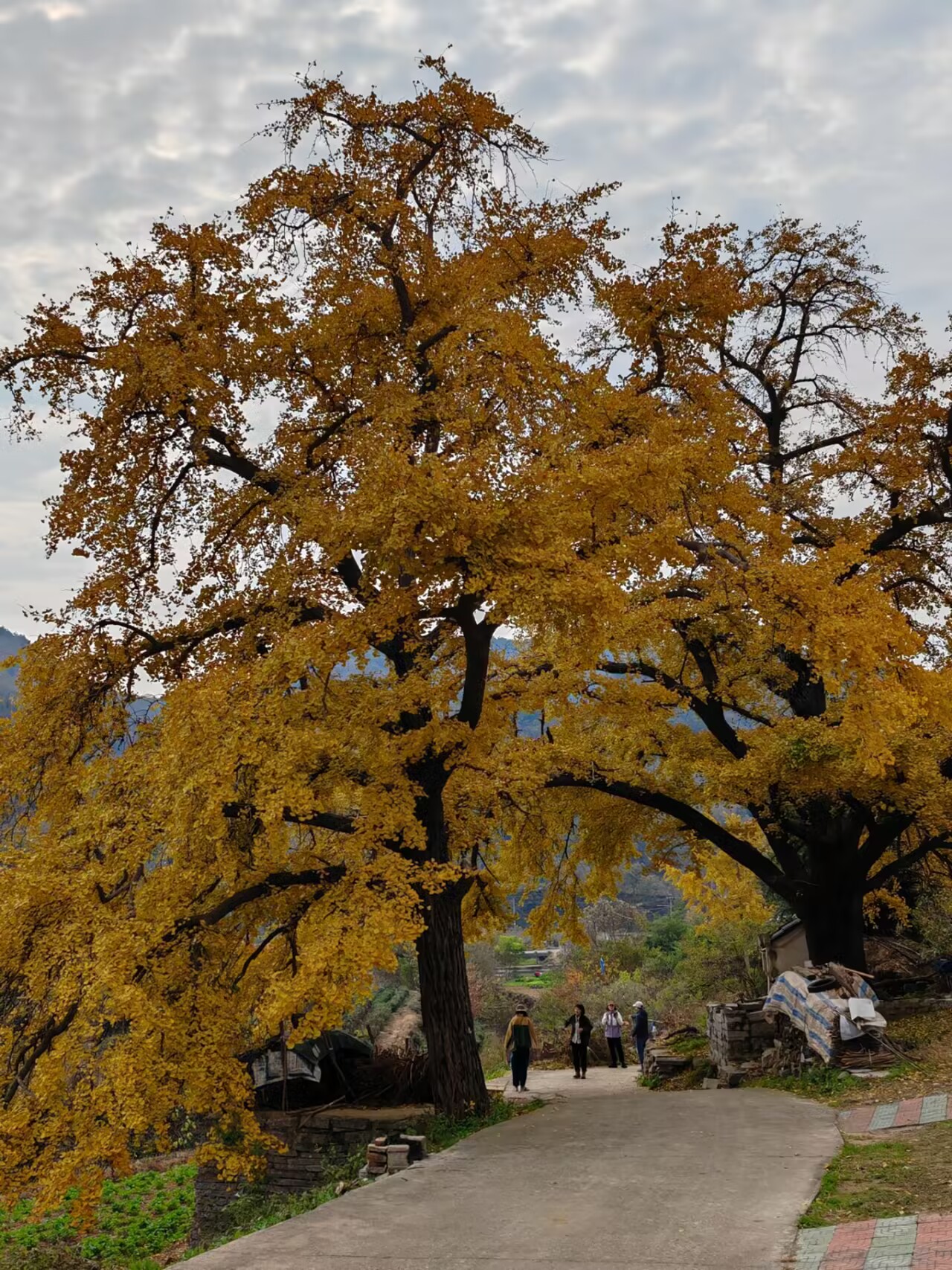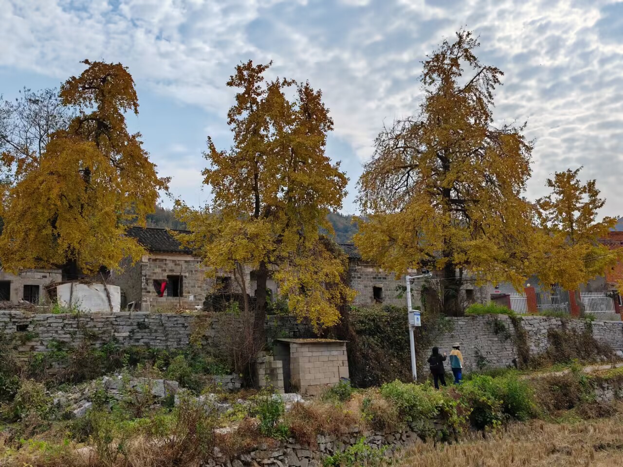 其中有两株枝繁叶茂的巨大银杏树,格外抢眼。