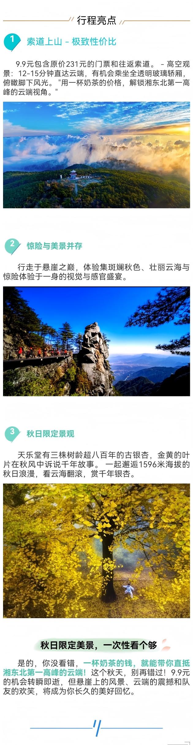 3、9.9元景区门票+往返索道(报名后联系客服告知预约方法);