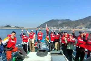 11:00左右到达目的地,先安排大家乘船游览青山平湖(费用已含);后抵达官财山下驻足拍照,粘粘天子宝地灵气