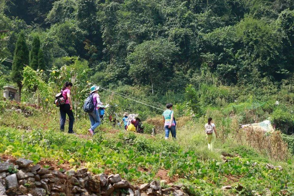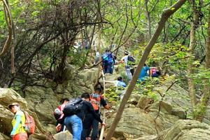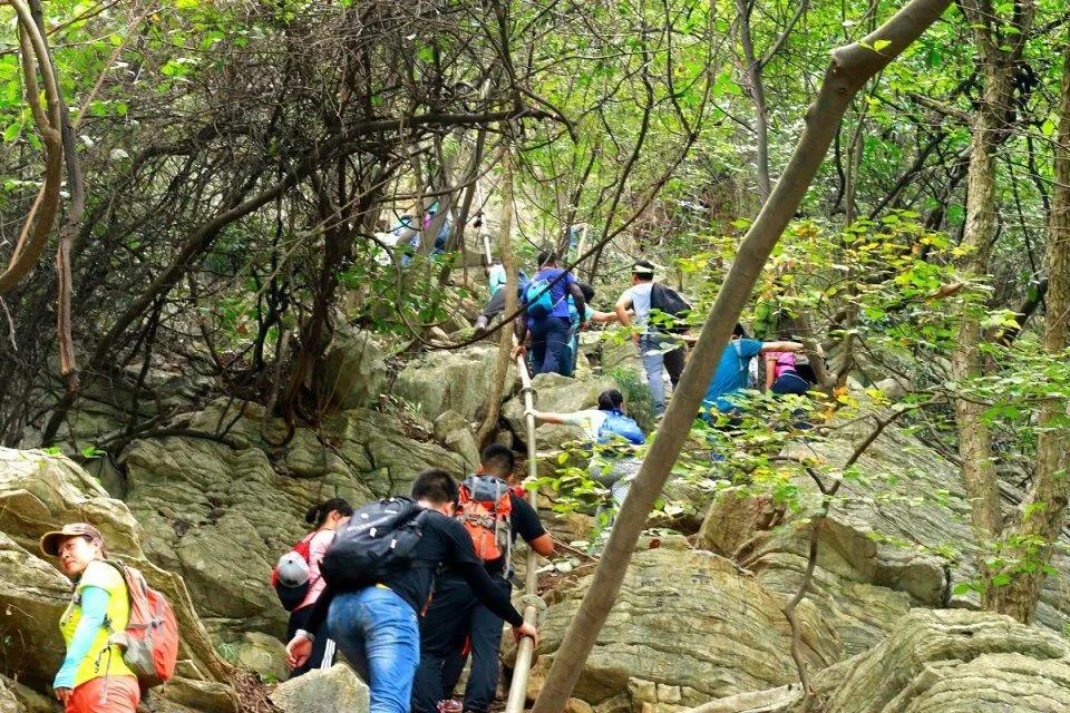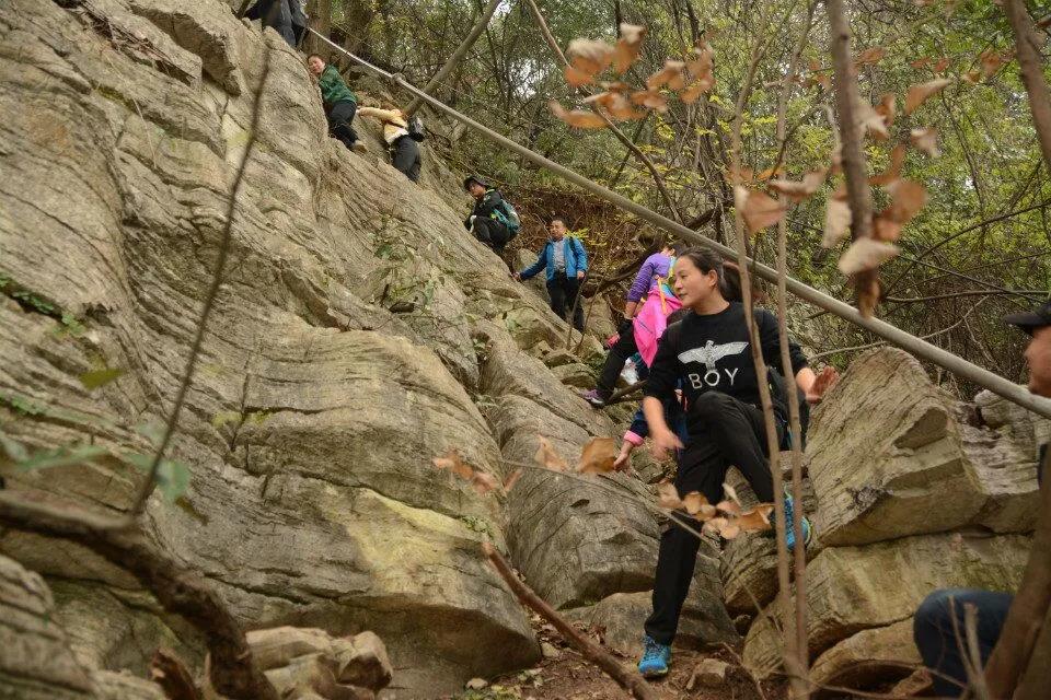 11:00 左右到达目的地开始徒步,我们先徒步一段乡村小道,然后开始爬山,大家需要手脚并用攀爬。