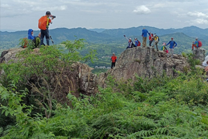 排石崖:又称石长城,为鸡笼山最著名的景点,在山顶南北走向五百多米,排石耸立,形似石林,石中有洞,绝壁峻险,风光万千。