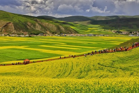 早餐后,从西宁市区出发,沿途欣赏祁连山草原美景,到达【门源百里油菜花海】,门源县是北方小油菜发源地,是全国乃至全世界zui大的小油菜种植区,种植面积达50万亩。这里可欣赏中国最壮观的油菜花海景观,云层不厚即可在此眺望到岗什卡雪山。这里是中国zui美的草原之一,绵延无边,羊儿、马儿、牦牛在宁静悠闲的吃草。山脚随便一个村庄,都是绝美的风景。