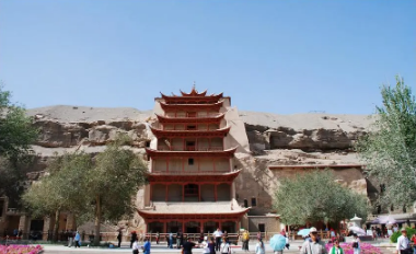 莫高窟也称千佛洞,位于敦煌市区的东南侧。莫高窟景区由莫高窟数字展示中心和莫高窟石窟两部分组成,其中莫高窟数字展示中心会放映关于莫高窟的短片。石窟开凿历经了千年,拥有大量的壁画、石窟、文物等,是世界闻名的佛教艺术胜地。高窟的艺术特点主要表现在建筑、塑像和敦煌壁画三者的巧妙结合上,将多个朝代的艺术风格表现得生动和谐。