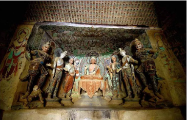 有洞窟735个,壁画4.5万平方米,泥质彩塑2415尊