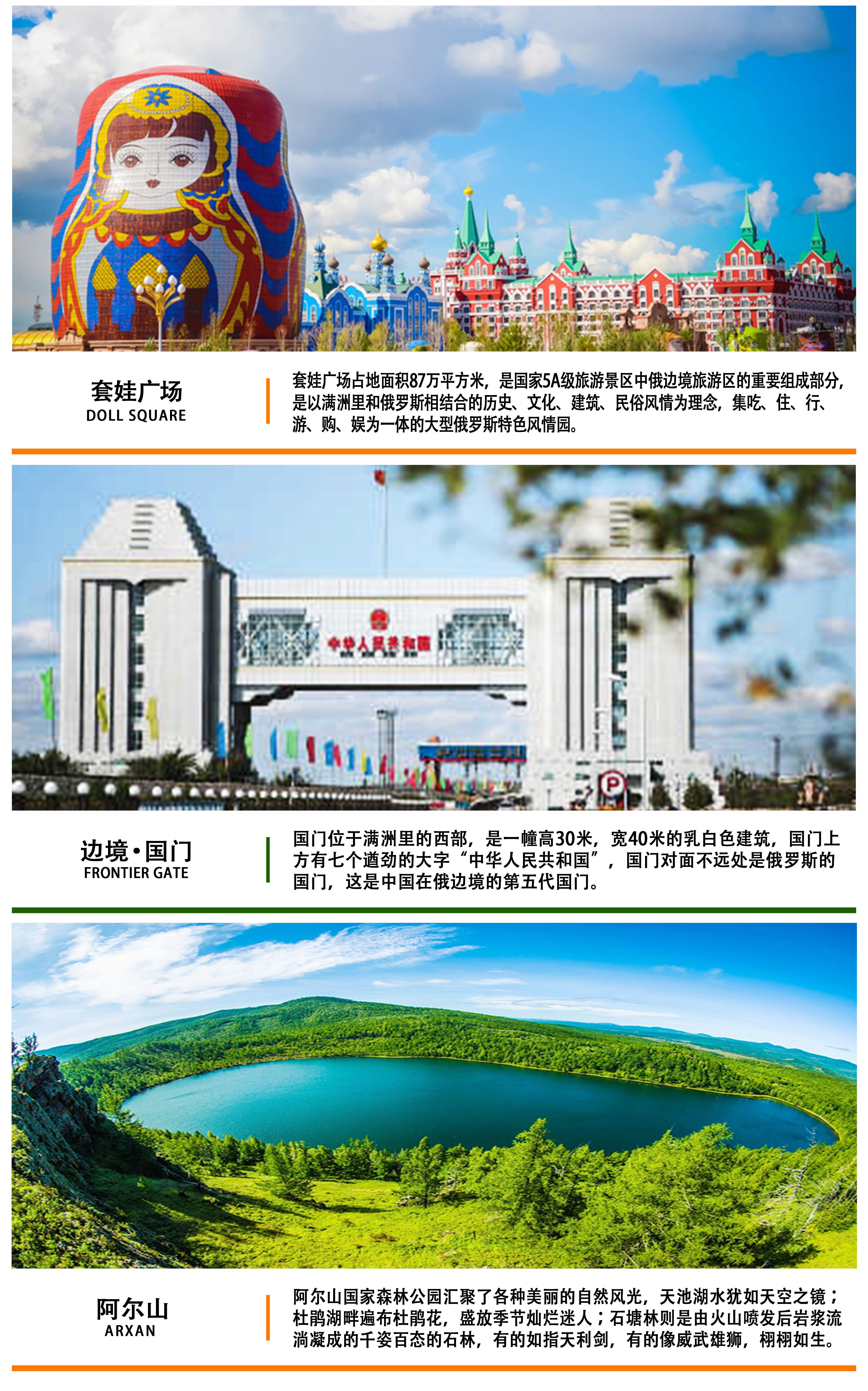 1. 涵盖黑龙江、内蒙古所有经典景点:莫日格勒河、蒙古部落、巴尔虎草原、亚洲第一湿地、呼伦湖、中国最大国门、阿尔山天池、