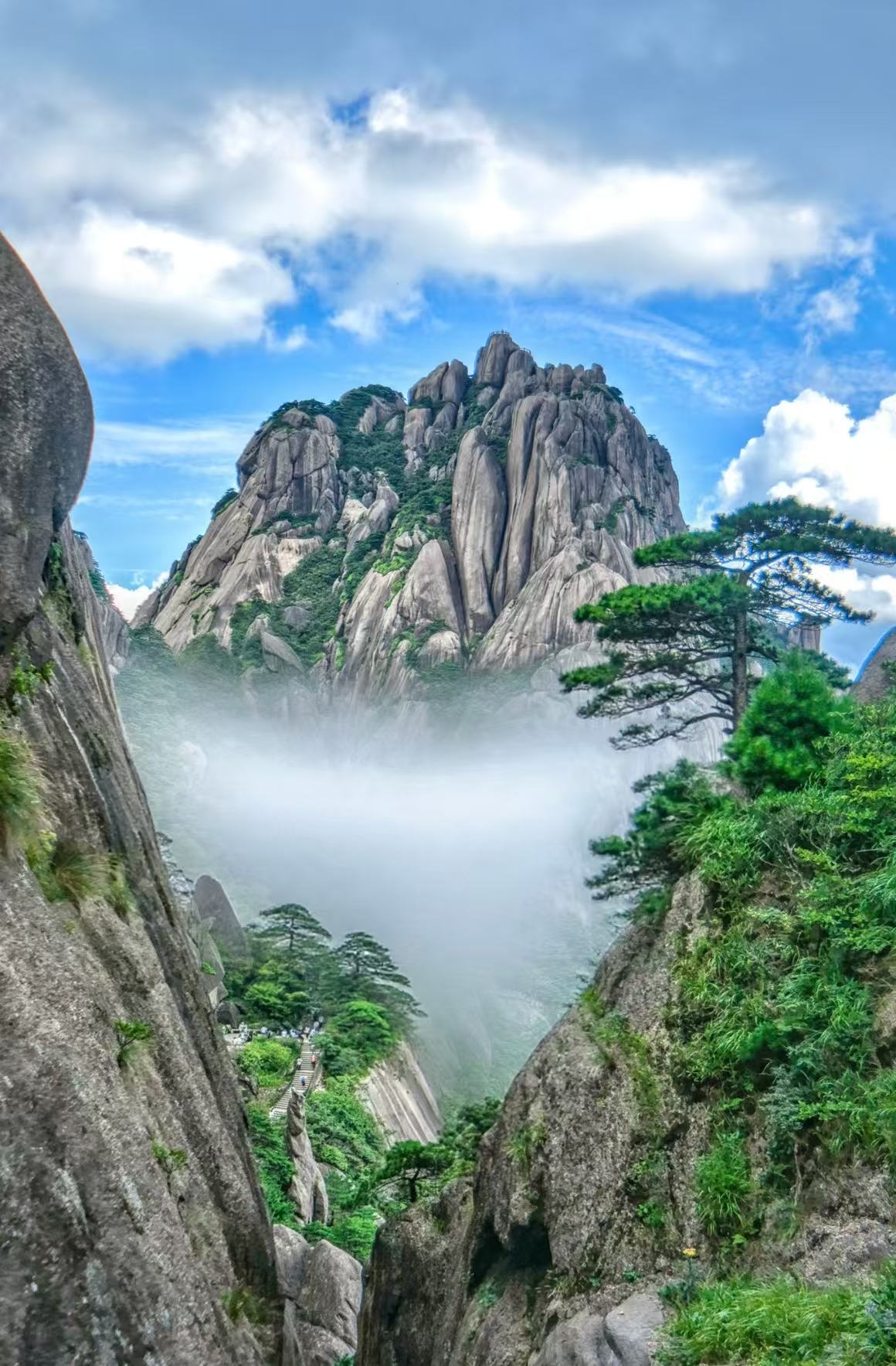 早餐后前往黄山,黄山南大门入-玉屏索道上-迎客松-百步云梯-鳌鱼峰-光明顶-飞来石-团结松-梦笔生花-黑虎松-始信峰-石笋缸-云谷索道下行-南大门出