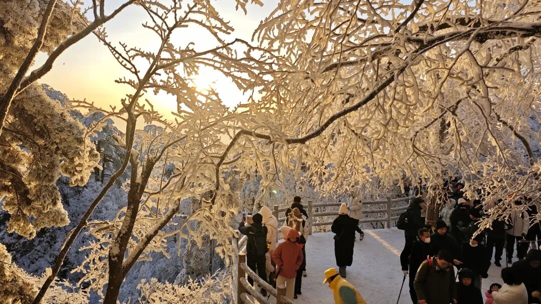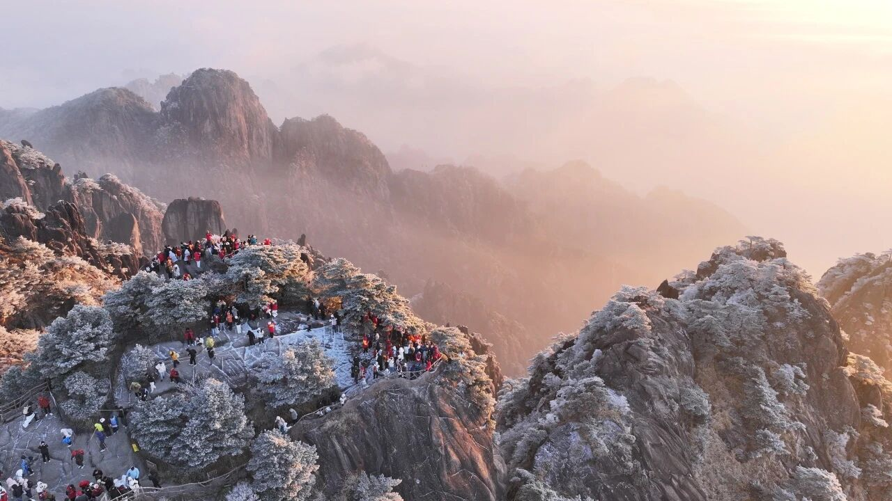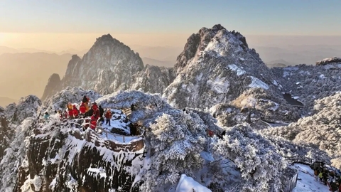 黄山山势陡峭,雪花随风飘舞,在峰峦、奇松、怪石上堆积,重塑了整个山的形态,因而被誉为继奇松、怪石、云海、温泉之后的 “第五绝”。