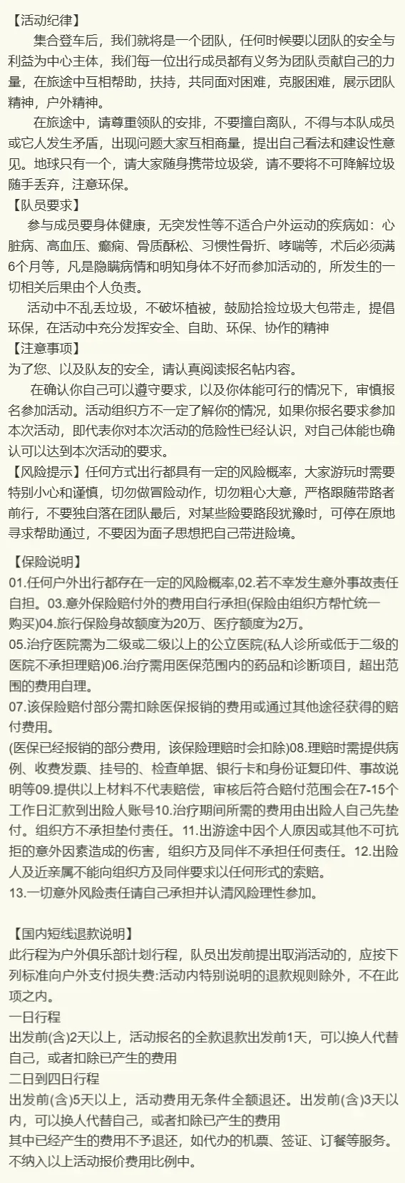 为不耽误大家时间和行程,本活动严禁迟到,如迟到视为主动放弃行程,到点开车,不退任何费用,请大家按时到达!