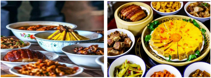 12:00 山里午餐,享用远安特色美食——八大碗+四小碟+蒸鸡蛋糕+泹冲菜乡宴;