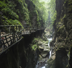 8:00 酒店早餐后出发,徒步游览武陵峡口(温馨提示:峡谷四洞相连,全程游览约 2 小时,请穿平底舒适防滑鞋,自备饮用水;峡谷内滑索、高空玻璃漂流等项目,可自愿自费体验);