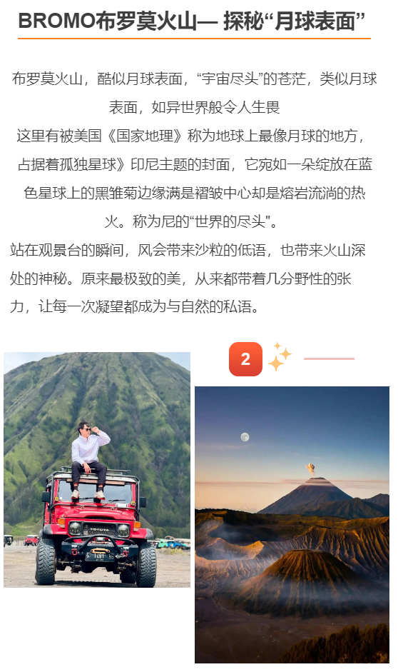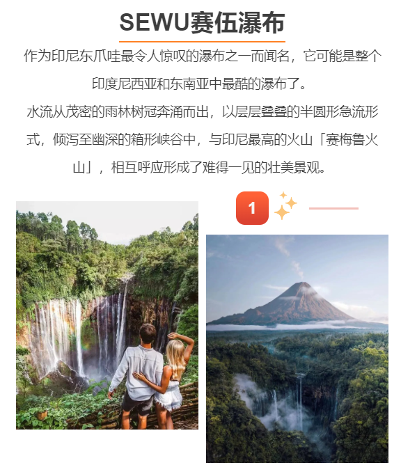 这场旅程将串联起印尼东爪哇的极致地貌与巴厘岛的灵动水景,从火山的壮阔到蓝海的绚烂,再到瀑布的清凉,解锁多层次自然体验。从布罗莫火山云海到赛武瀑布清流,再探塔布汗蓝海,巴厘岛三重景打卡,一键看懂行程,天花板级的海岛游能瞬间治愈火山之旅的疲累,为旅途画上圆满句号。