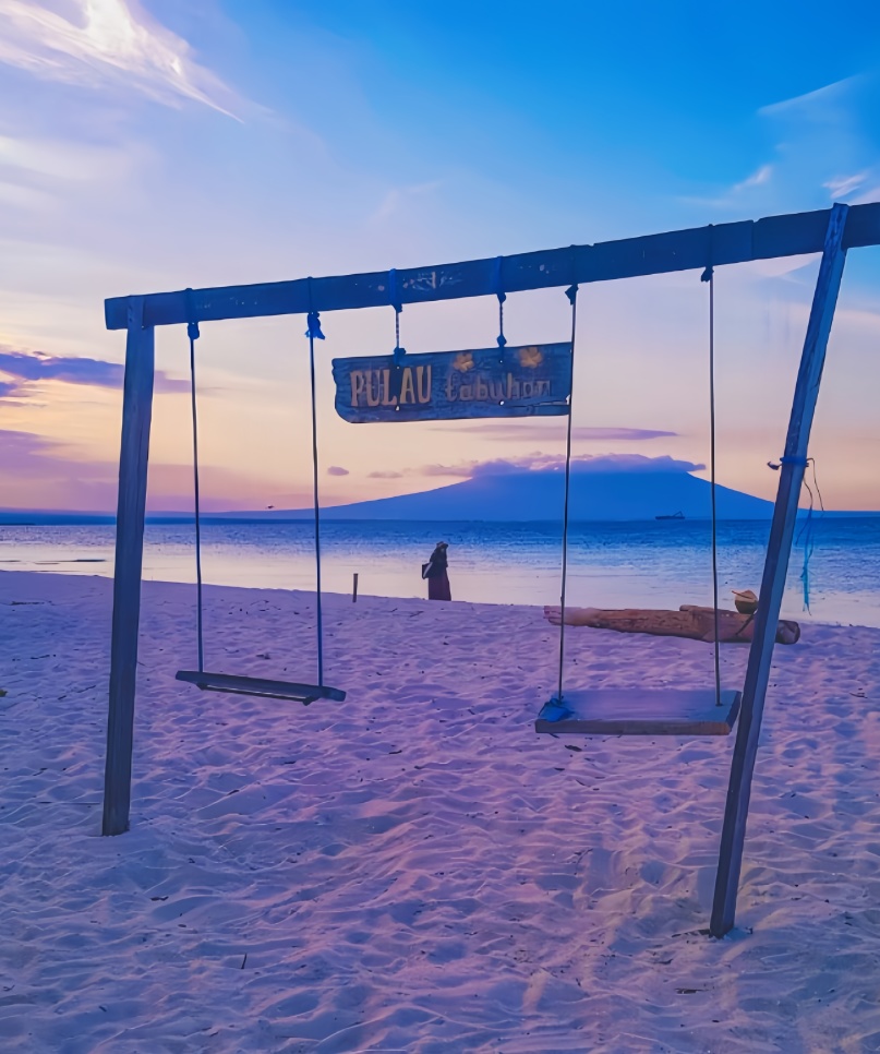 Tabuhan塔布汉岛一个在印尼没那久热门的岛屿,但景色却很赞像果冻一样的海随便拍都是大片,沙滩上没有垃圾只有被海浪送上来的珊瑚,海水清澈透明深度不同蓝度不同,远处可见对岸被白云缠绕的默拉皮火山美到窒息,完全不受商业化的污染,可与菲律宾/仙本那海域媲美