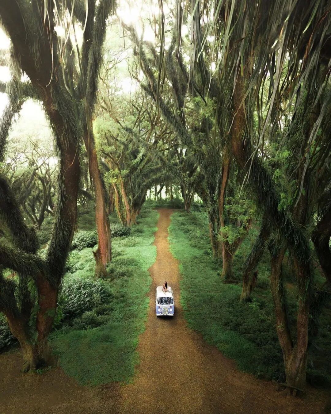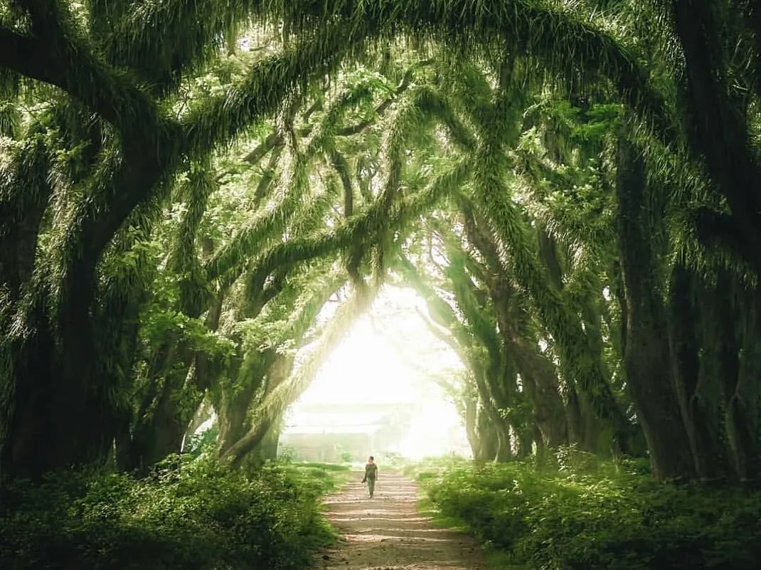 这片森林以其壮观的自然美景和神秘氛围而闻名。森林中的树木大多是百年猴荚树,覆盖着厚厚的苔藓,树冠遮天蔽日,犹如《指环王》中罗斯洛立安森林的现实版