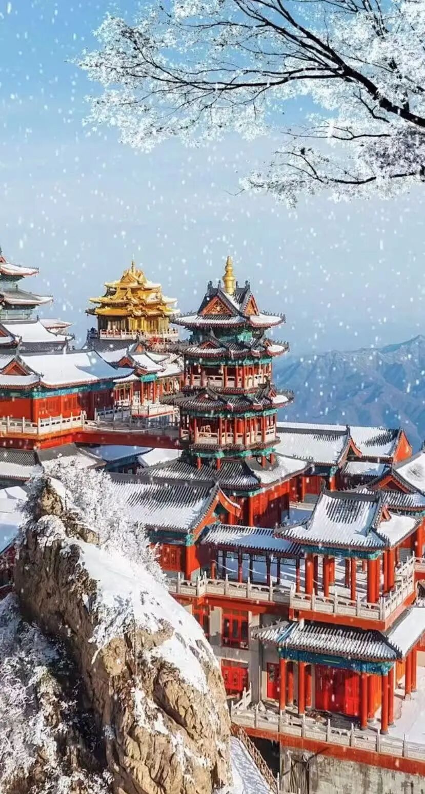 山峦叠嶂,白雪皑皑、玉树琼枝,