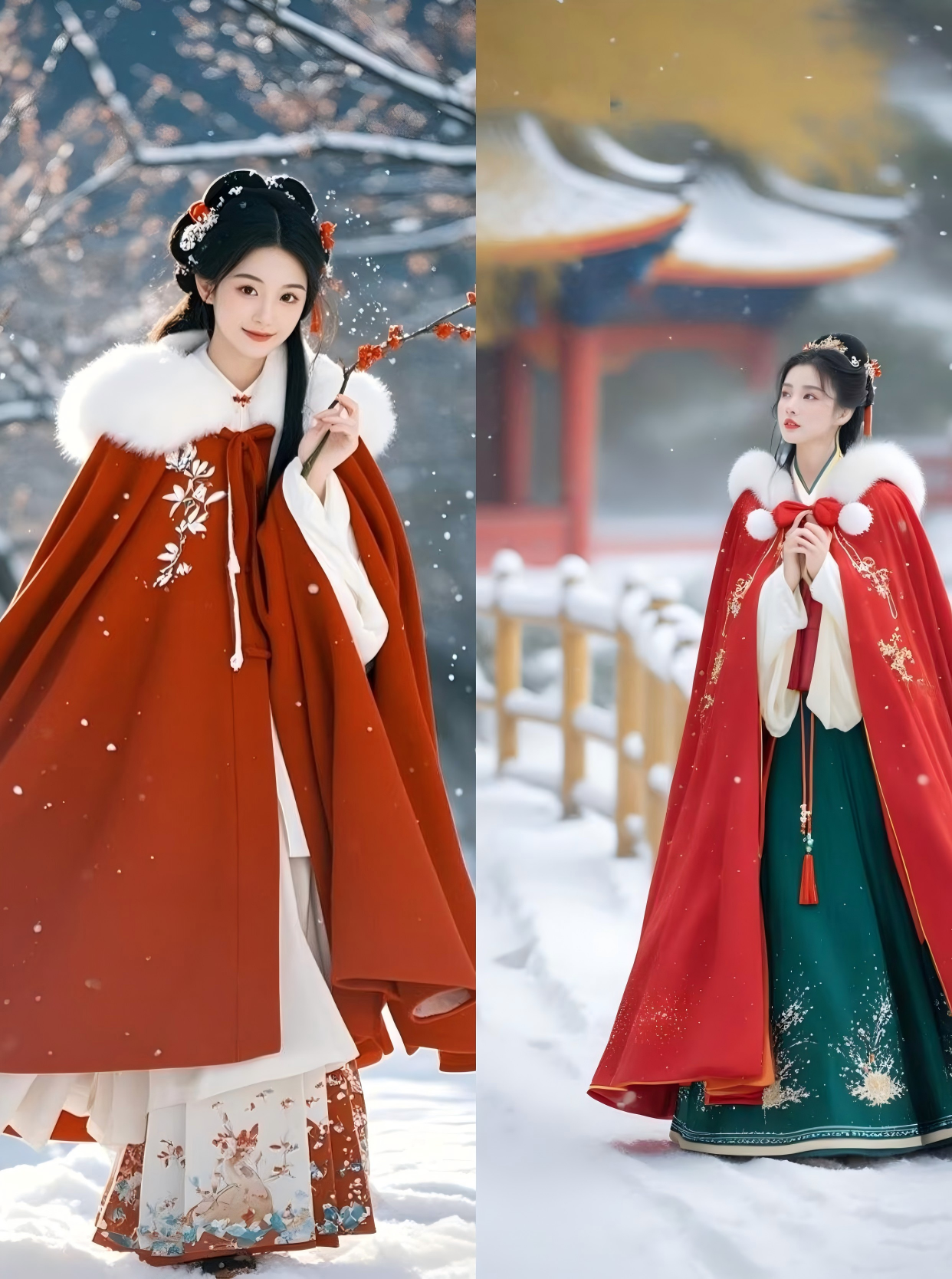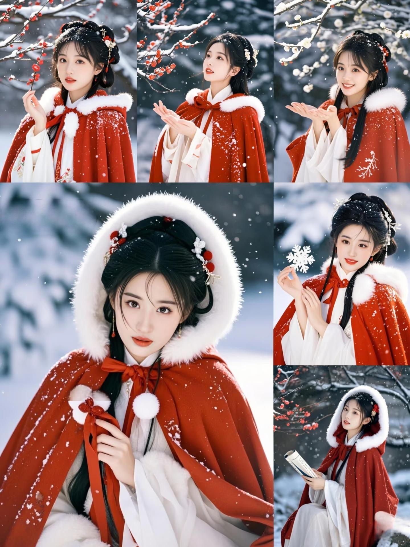 我们可着着红色斗篷穿梭于林间溪畔和白雪长廊,