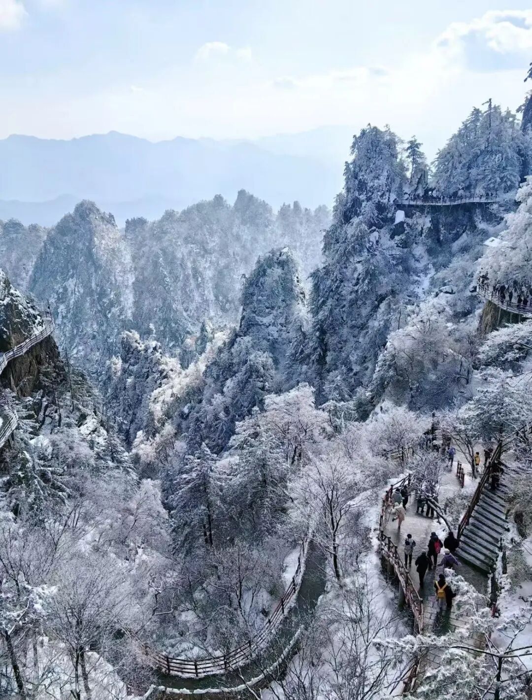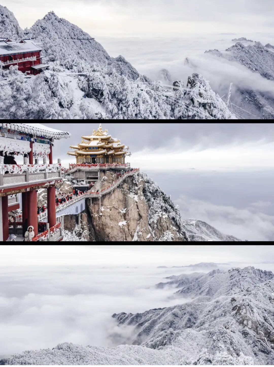 2、【老君山】这传说是老子归隐修炼的圣地,也被誉为天下名山,被誉为“天下无双圣境,世界第一仙山”。雪天的老君山如同仙境一样, 登上老君山,看云海翻涌,大雪覆盖了无数古老的故事和传说。