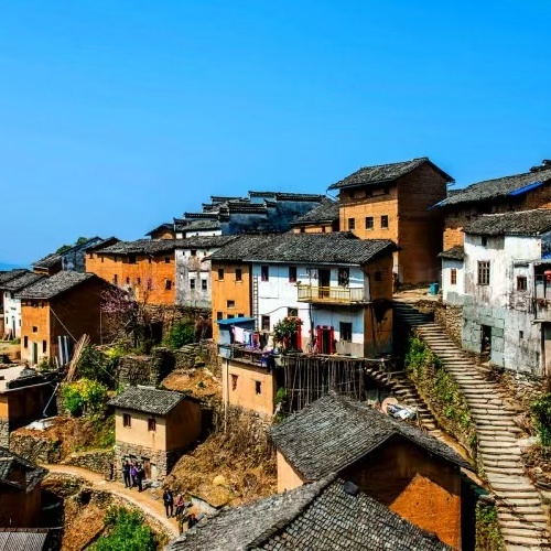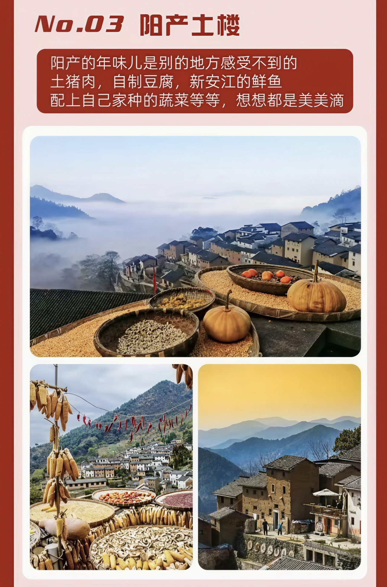 游览两小时后前往【阳产土楼】阳产,位于皖南山区的群山之中,是一个依山而筑的小山寨。这里由于地势高,交通不便,数百年来,山民就地取材,采周边青石铺路架桥,取红壤木材筑巢而居,日出而作,日入而息,渴饮山泉,饿食五谷,多种农作物生长,子孙延续。流年之中,形成了鳞次栉比、错落有致、质朴壮观的土楼群。