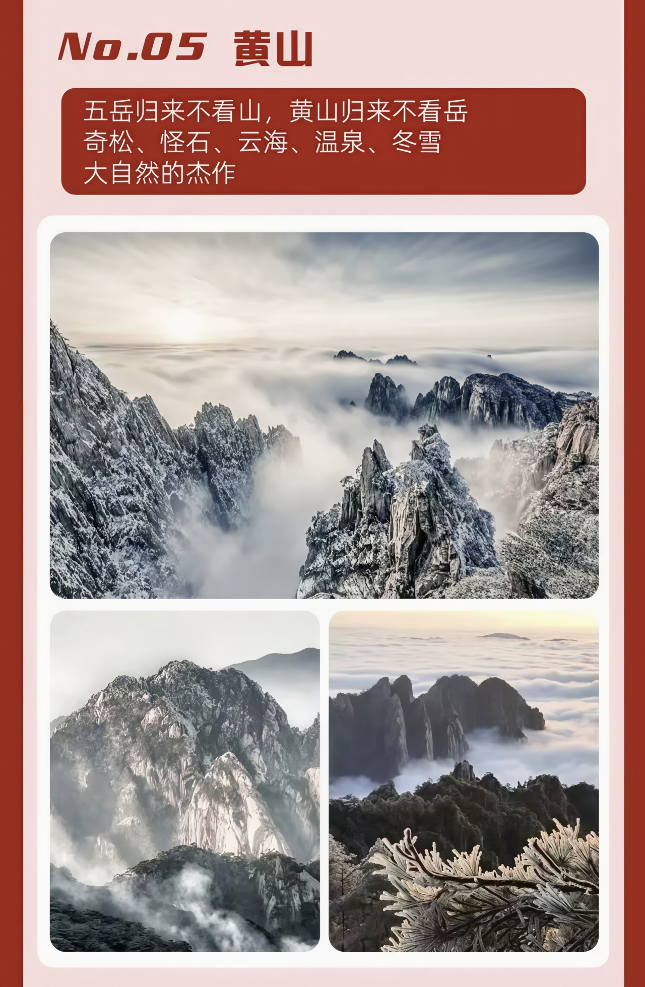 自古就有句话说“五岳归来不看山,黄山归来不看岳”,今天我们将带领大家领略一下【黄山】的壮阔,欣赏称为黄山的“四绝”的黄山的奇松、怪石,运气好的话,还可以偶遇“四绝”之一的云海,或是冬天可能欣赏到雾凇、雪景哈!