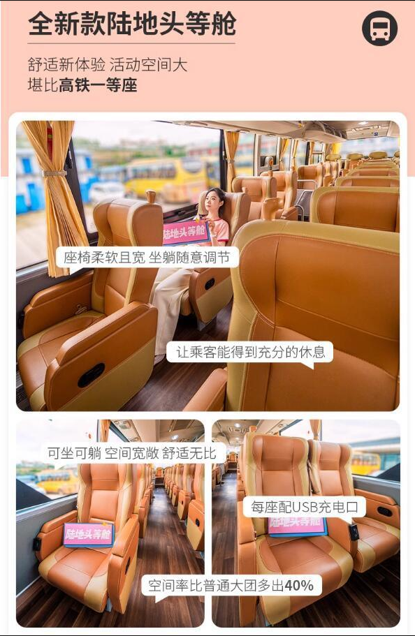 【大巴升级】由“传统旅游大巴”升级为“2+1陆地头等舱保姆大巴”久坐不累