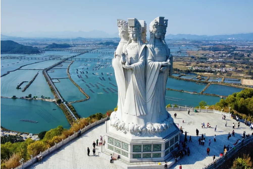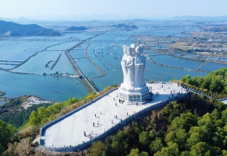 【南海观音】位于汕尾红海湾景区,红海湾旧称汕尾湾,位于广东省汕尾市沿海一个半封闭的海湾,距深圳大约100公里,距香港隔海约80海里,东临碣石湾,