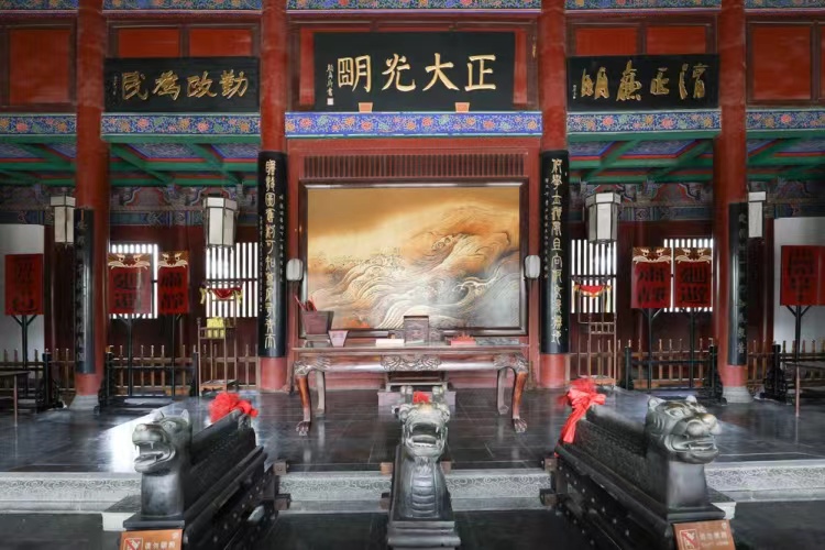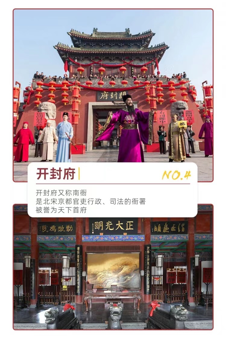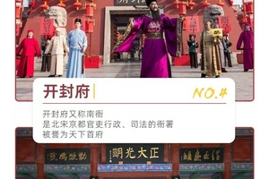 早餐后前往北宋天下首府-开封府,开封府号称大宋南衙,依北宋李诫《营造法式》建造,以正厅(大堂),议事厅,梅花堂为中轴线,辅以天庆观,明礼院,潜龙宫,清心楼,府司西狱,英武楼等五十余座大小殿堂,表现大宋天下首府的官衙文化。观看《包拯开衙》、《包公审案》、参与《榜下捉婿》等节目。
