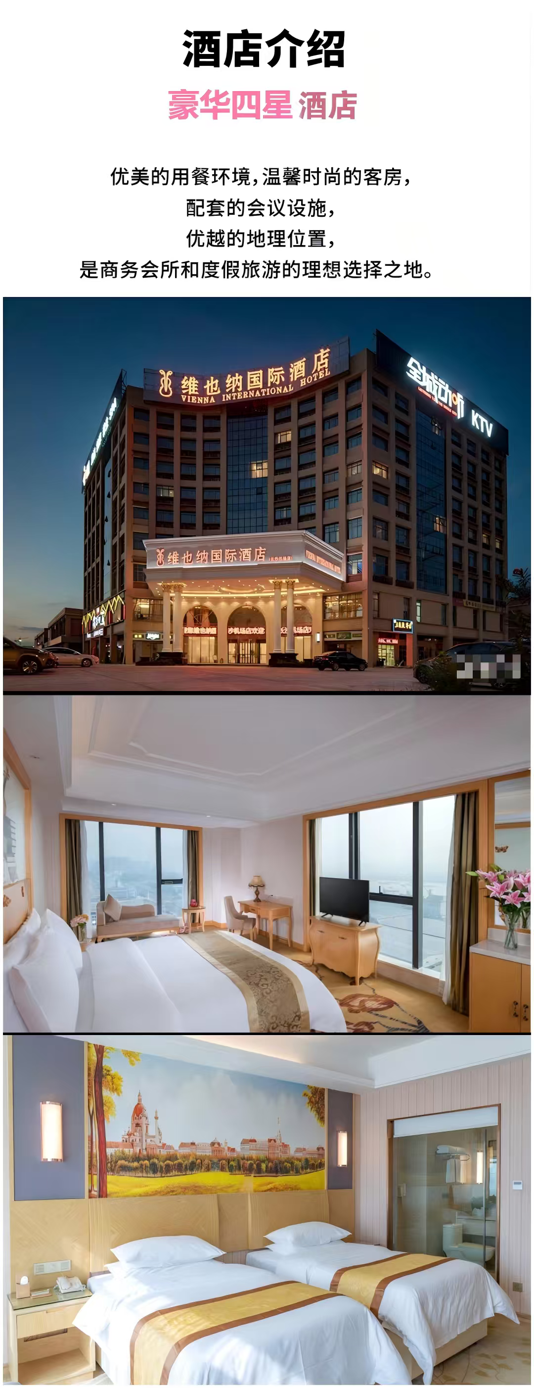 住宿:长沙四星酒店住宿1晚双人标间费用