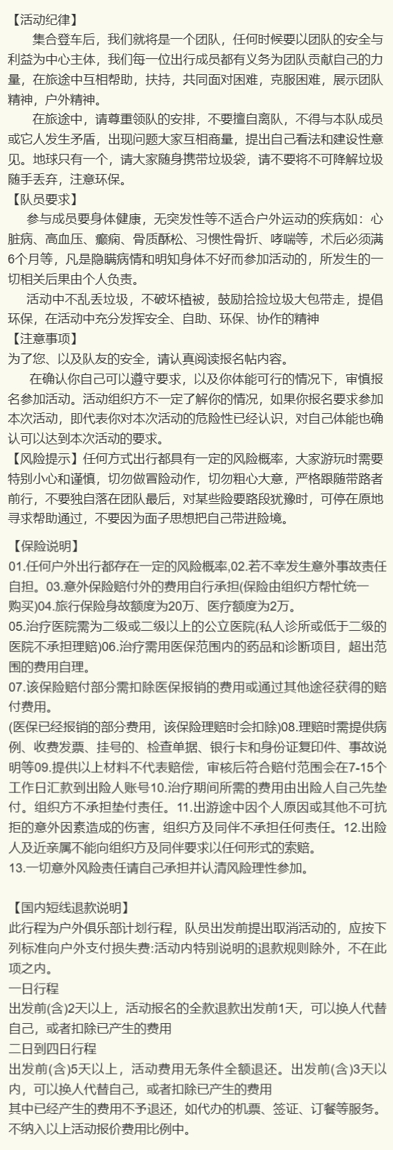 【队员要求】出游人员必须身体健康(无严重高血压、习惯性骨折、心脏病、支气管炎、哮喘等疾病)