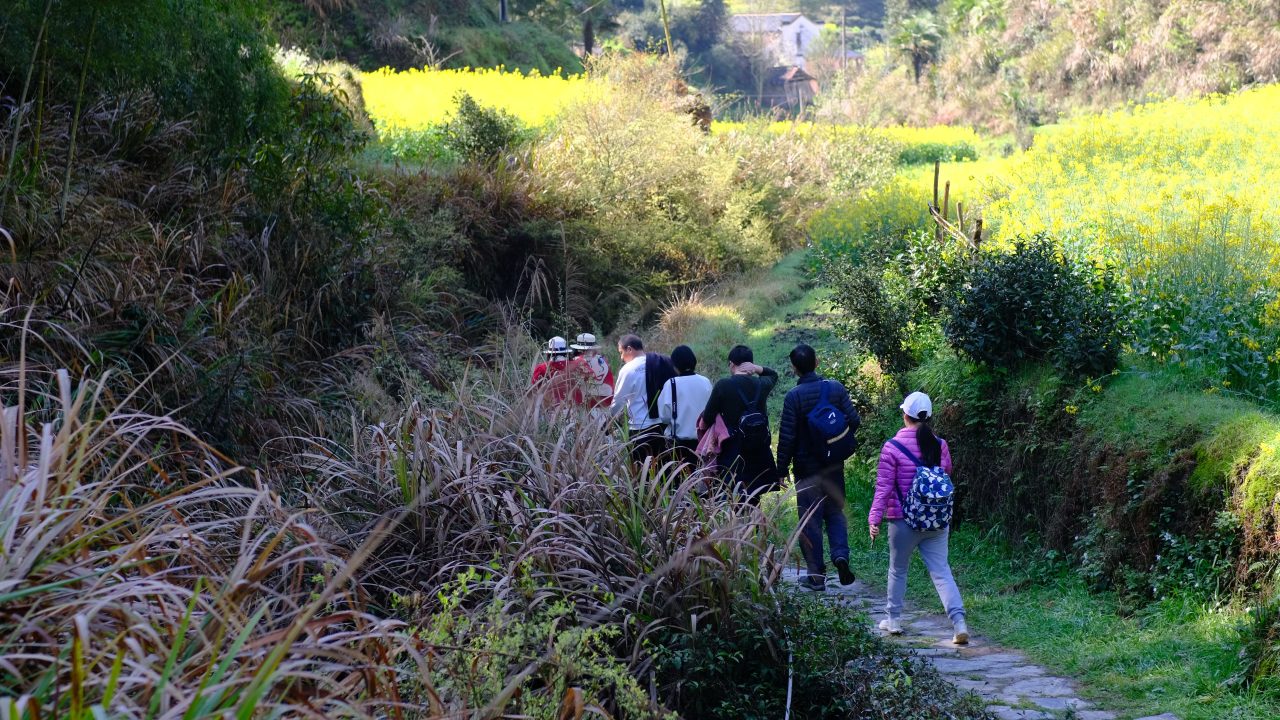大约14:00到达婺源县赋春镇,前往岩前村,在岩前村油菜花田停留拍摄,然后前往徒步入口,徒步7公里古驿道进入深山古村长溪村(不想徒步的可以跟大巴车直接进村),快到村口正好在观景台拍摄长溪村的日落美景。