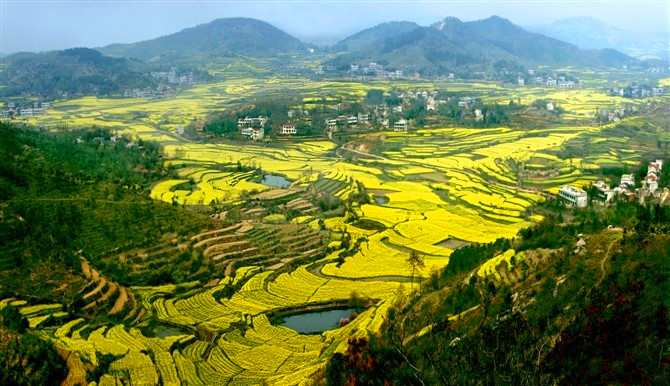 12:30 抵达镇中农家,周边风景拍照,午餐(可农家乐),下午继续游览梯田花海;