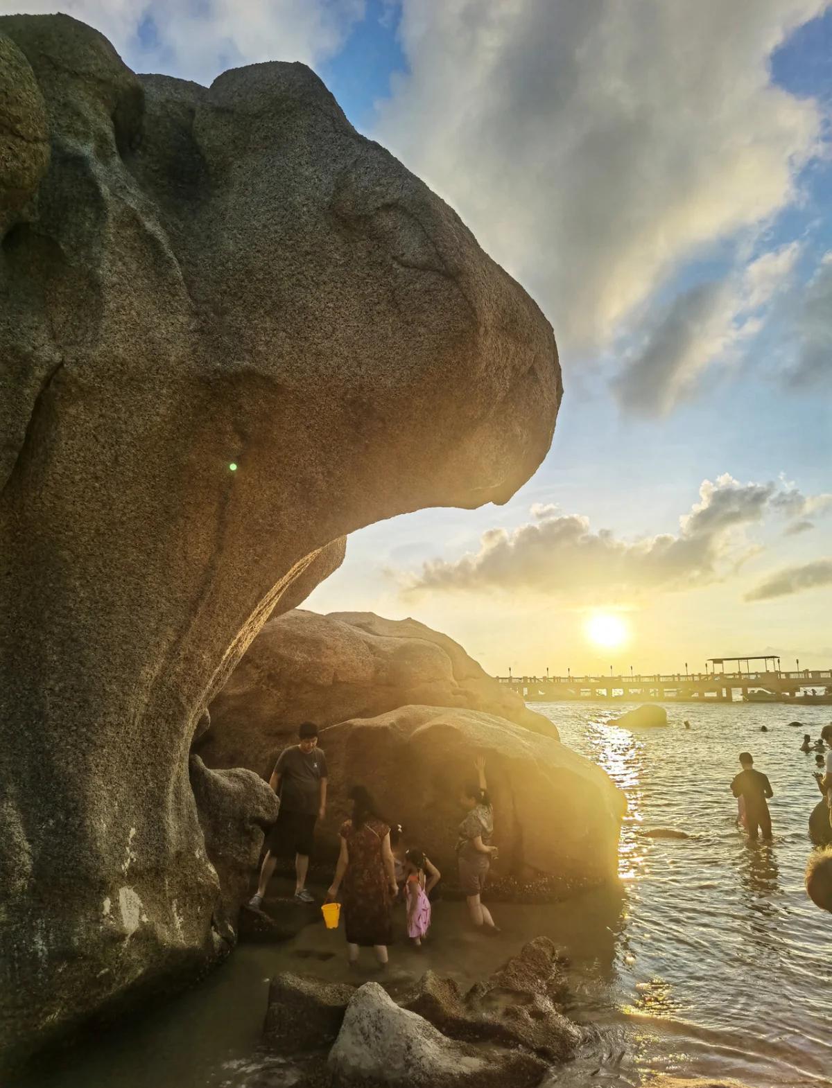 景点介绍:巽寮湾标志性奇石景观,由天然海蚀石组成,造型奇特,退潮后可近距离打卡奇石,夕阳下的海湾与礁石同框,出片率极高。